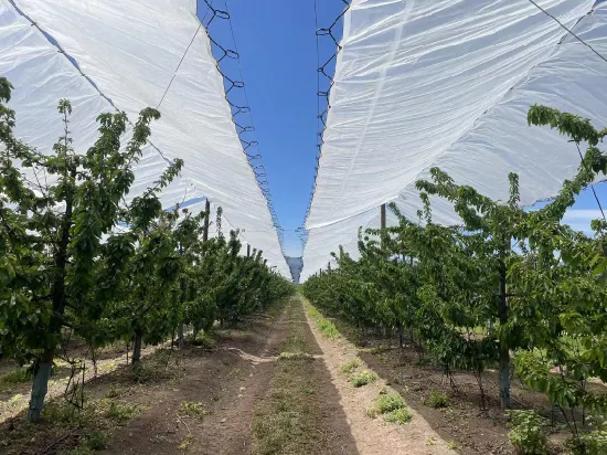 Prevent Cherry cracking and ensure a timely harvest with Rainshield, resulting in higher yields and lower labour costs. Drier orchards are less prone to brown rot and minimize the need for spraying. Our coated PP Clear Fabric can be custom fitted with zippers for quick and easy deployment ahead of inclement weather. Greenhouse effect raises temperatures under the covers in the spring, but the slight shade factor will reduce temperature when the weather heats up.