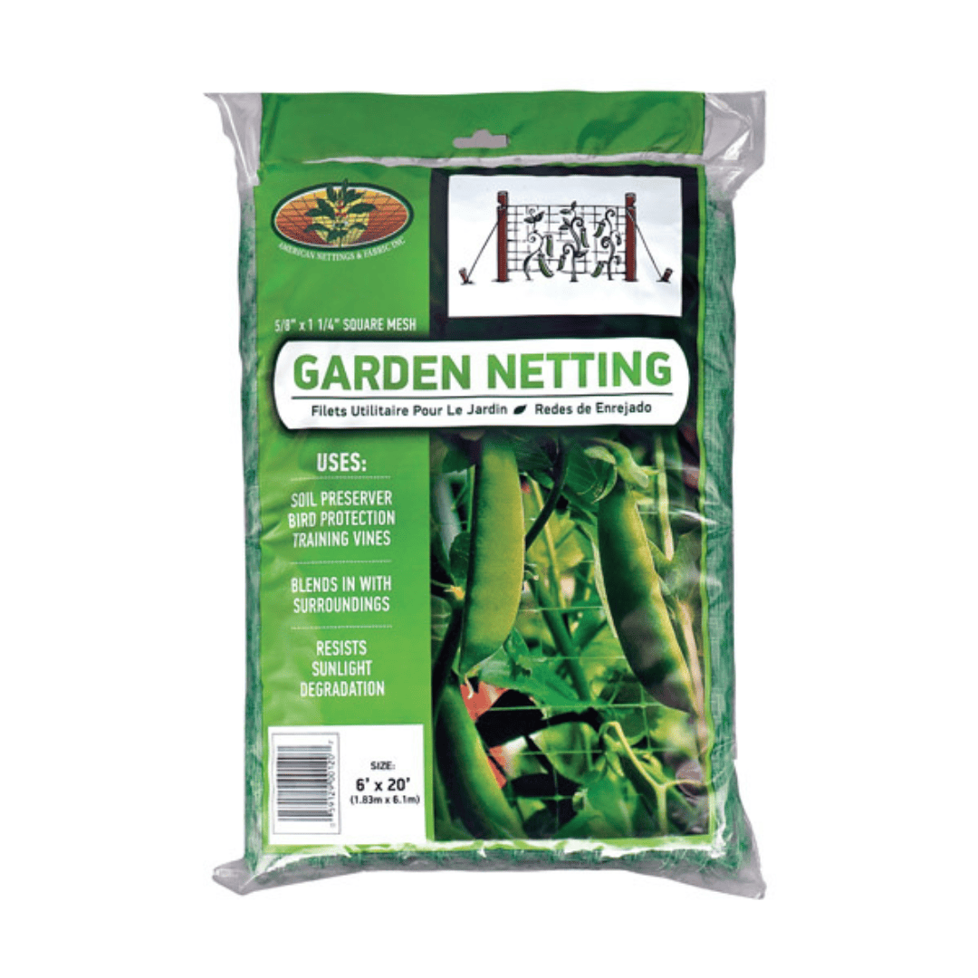 Lightweight, green, medium sized 5/8″ x 1-1/4″ mesh makes Garden Netting an attractive all-purpose netting. Uses include training vines, bird protection, and soil erosion in conjunction with mulch. Lifespan is 1-2 years. For suggestions and more information about plastic Garden Netting please see Product Description below.
